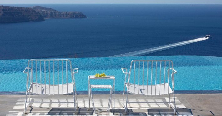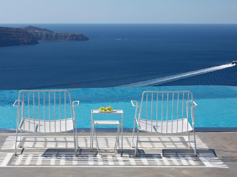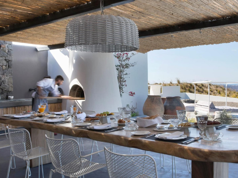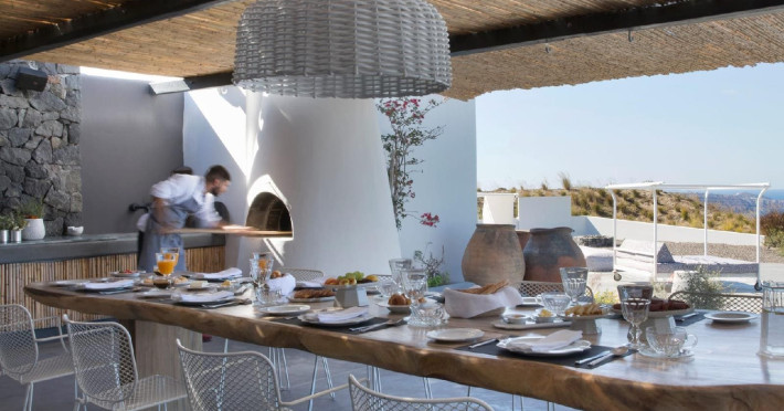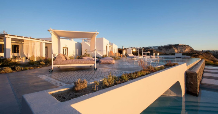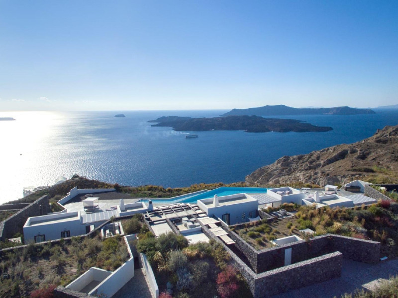 “Redefining True Luxury on one of the world’s most beloved & unique islands” Perched on a 1,000-foot cliff overlooking Santorini’s iconic caldera on a lush two-acre Estate, a new luxury retreat offering an experience as extraordinary as its unrivalled location. The island’s first truly private, exclusive-use resort Estate meticulously designed for year- round enjoyment. Reflecting a new concept of hospitality represented by the quintessentially Greek philosophy of “philotimo,” the property’s resident host is on hand to make guests’ every desire a reality. The Estate’s chef designs menus each day around guests’ personal tastes and cravings, showcasing the finest offerings of the region. Tucked away on a cliff 1,000 feet above the Aegean, this utterly unique property offers the most breath-taking views on the planet, capturing Santorini’s iconic whitewashed villages, epic sunsets, and vibrant land and seascapes. , , The estate occupies a coveted perch on the edge of the caldera in the Messaria area of the island.The property is designed to host up to 10 guests. Families are very welcome and children/infants can be comfortably accommodated on request basis, in the five independent suites as laid out thoughtfully on the estate’s spectacular acreage. Each suite enjoys its own private and semi-private space for outdoor living in every season, with dramatic floating fireplaces, heated plunge pool, outdoor Whirlpools, radiant heated floors, and magnificent views throughout. The Estate’s five private suites are thoughtfully laid out for optimal communal living and feature glorious views from all vantage points, both inside and out. Flexible living spaces are easily transformed into common areas, allowing for the optimum enjoyment of the property, depending on each group’s needs. Three suites feature varied one-bedroom layouts, with easy open floor plans and gracious indoor and outdoor living areas that are easily adapted according to guests’ specific needs. A separate two-bedroom bungalow, adjacent to the Estate’s spa facility, offers even more flexibility. Acclaimed international interior designer Paola Navone has brought her sophisticated Aegean aesthetics, using a color palette based on whites and dark grays splashed with colors reflecting the sea and the blooming landscape, inviting the warmth and serenity of the outdoors into each room. Walls are inlaid with local stone, in irresistibly rustic contrast to luxurious fabrics by Rubelli of Venice and bath fixtures by Stella of Italy. , , , , , , , , , , , , , , , , , , , , , , , , , , , , , , , , , , , , , , , , , , , , , , , , , , , , , , , , , , , , , , , , , , , , , , , , , , , , , , , , , , , , , , , , , , , , , , , , , , , , , , , ,“Redefining True Luxury on one of the world’s most beloved & unique islands” Perched on a 1,000-foot cliff overlooking Santorini’s iconic caldera on a lush two-acre Estate, a new luxury retreat offering an experience as extraordinary as its unrivalled location. The island’s first truly private, exclusive-use resort Estate meticulously designed for year- round enjoyment. Reflecting a new concept of hospitality represented by the quintessentially Greek philosophy of “philotimo,” the property’s resident host is on hand to make guests’ every desire a reality. The Estate’s chef designs menus each day around guests’ personal tastes and cravings, showcasing the finest offerings of the region. Tucked away on a cliff 1,000 feet above the Aegean, this utterly unique property offers the most breath-taking views on the planet, capturing Santorini’s iconic whitewashed villages, epic sunsets, and vibrant land and seascapes. , , The estate occupies a coveted perch on the edge of the caldera in the Messaria area of the island.The property is designed to host up to 10 guests. Families are very welcome and children/infants can be comfortably accommodated on request basis, in the five independent suites as laid out thoughtfully on the estate’s spectacular acreage. Each suite enjoys its own private and semi-private space for outdoor living in every season, with dramatic floating fireplaces, heated plunge pool, outdoor Whirlpools, radiant heated floors, and magnificent views throughout. The Estate’s five private suites are thoughtfully laid out for optimal communal living and feature glorious views from all vantage points, both inside and out. Flexible living spaces are easily transformed into common areas, allowing for the optimum enjoyment of the property, depending on each group’s needs. Three suites feature varied one-bedroom layouts, with easy open floor plans and gracious indoor and outdoor living areas that are easily adapted according to guests’ specific needs. A separate two-bedroom bungalow, adjacent to the Estate’s spa facility, offers even more flexibility. Acclaimed international interior designer Paola Navone has brought her sophisticated Aegean aesthetics, using a color palette based on whites and dark grays splashed with colors reflecting the sea and the blooming landscape, inviting the warmth and serenity of the outdoors into each room. Walls are inlaid with local stone, in irresistibly rustic contrast to luxurious fabrics by Rubelli of Venice and bath fixtures by Stella of Italy. , , , , , , , , , , , , , , , , , , , , , , , , , , , , , , , , , , , , , , , , , , , , , , , , , , , , , , , , , , , , , , , , , , , , , , , , , , , , , , , , , , , , , , , , , , , , , , , , , , , , , , , ,