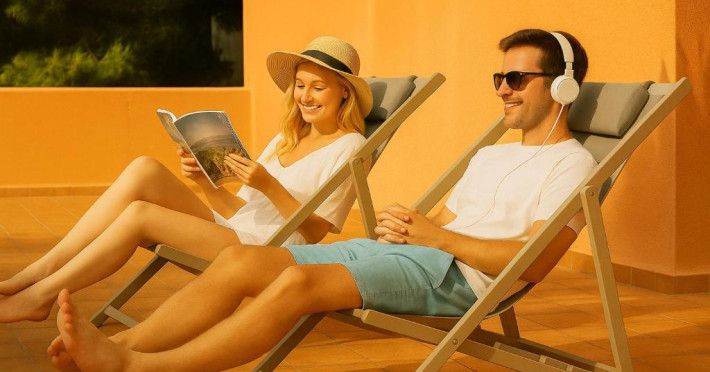 Camerele luminoase combină stilul mediteranean cu dotări moderne, multe dintre ele oferind vedere spre mare. Piscina exterioară inconjurată de șezlonguri și zona de lounge creează cadrul perfect pentru momentele de relaxare.