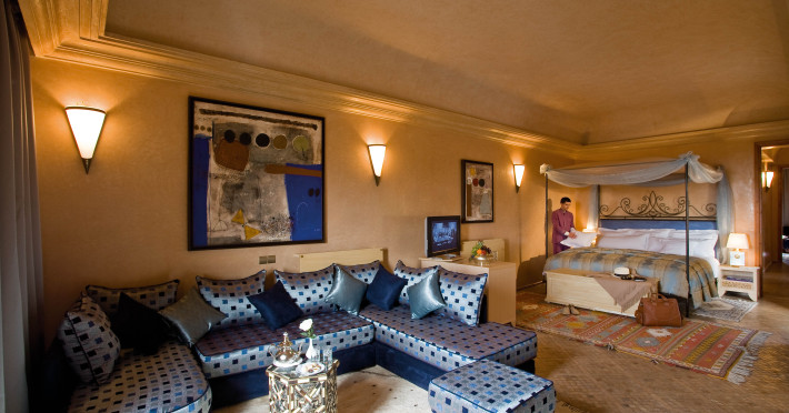 Around 500 m from a beach is located the hotel Es Saadi Marrakech Resort - Palace. The city centre is only around 100 m away. The hotel has Wi-Fi, a shop, a hairdresser as well as a jacuzzi. In the outdoor area you will find a garden as well as a heated pool, where sun loungers and sun umbrellas are available for free. There is also a children's pool. Furthermore, you can relax outdoors on the sun terrace. For your entertainment, the hotel offers a library/reading room and a disco. You can store your luggage in the hotel's storage room. If necessary, you can contact the medical centre. For conventions and other business meetings, the hotel offers a conference area. Smoking is permitted in the hotel. The hotel requires that all guests pay a deposit upon arrival. Due to its barrier-free facilities , such as wheelchair-accessible bathrooms, the hotel is also suitable for wheelchair users. Catering Breakfast is offered from the buffet. Lunch and dinner are also served from the buffet. In the gastronomic area also vegetarian dishes are served. Distances- Airport: approx. 1,5 km