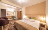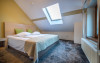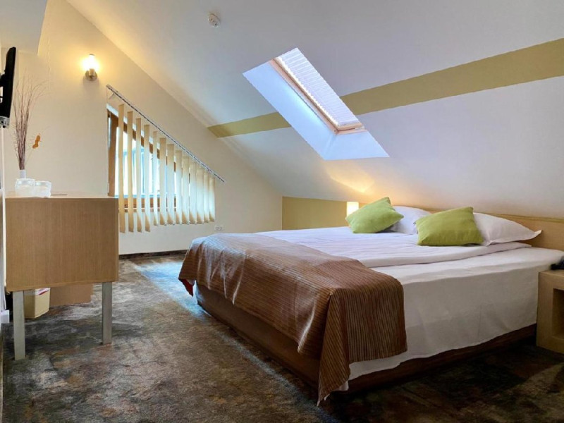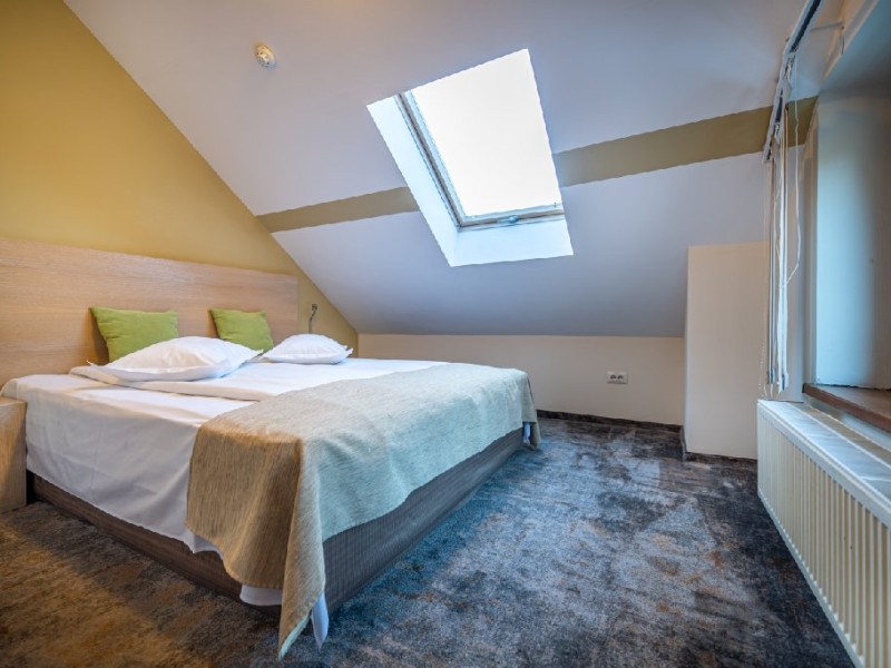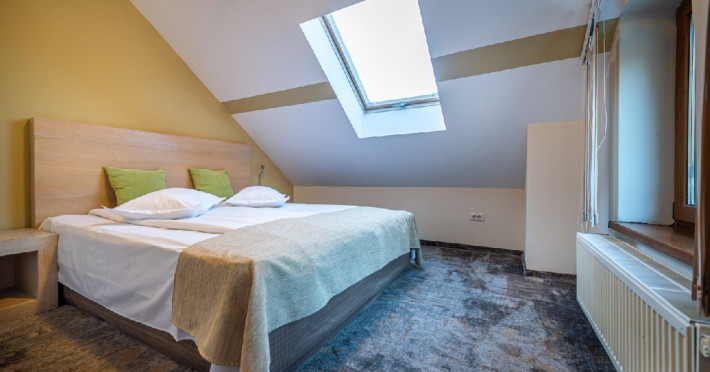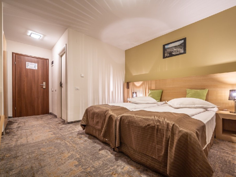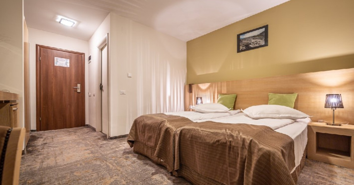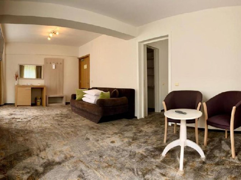 64 de camere, dintre care 41 sunt construite recent. Spatiile de cazare sunt modern amenajate, iar balcoanele va ofera o priveliste deosebita asupra padurilor si muntilor ce le inconjoara.Ca structura,camerele se impart in:Spatii de cazare Executive 4*:10 camere duble cu pat matrimonial,31 camere duble cu pat twin.Spatii de cazare Standard 3*: 5 camere duble cu pat matrimonial, 9 camere duble cu pat twin,9 apartamente cu canapea extensibila. Toate camerele au bai proprii, minibar, internet gratuit, televiziune prin cablu, telefon cu acces internaţional, uscator de par, balcon sau terasă, canapea extensibila in living, sistem de avertizare a incendiilor.Pentru familiile cu copii se pot pune la dispozitie paturi suplimentare.
