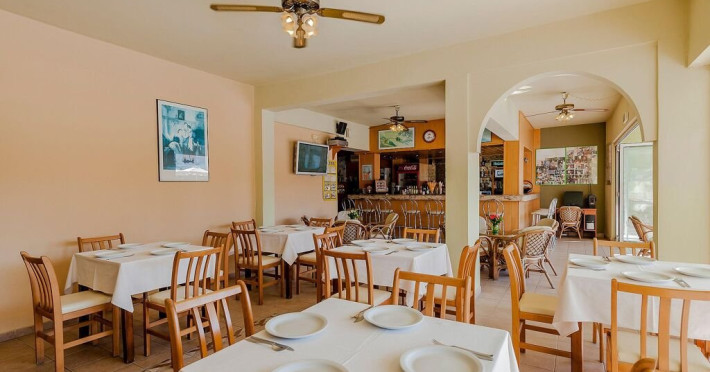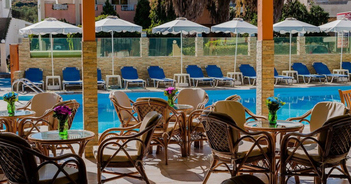 Restaurantul a la carte al hotelului ofera preparate din bucataria greceasca si mediteraneana. Micul dejun este servit in sistem a la carte. Hotelul are doua baruri unul in lobby si unul la piscina.