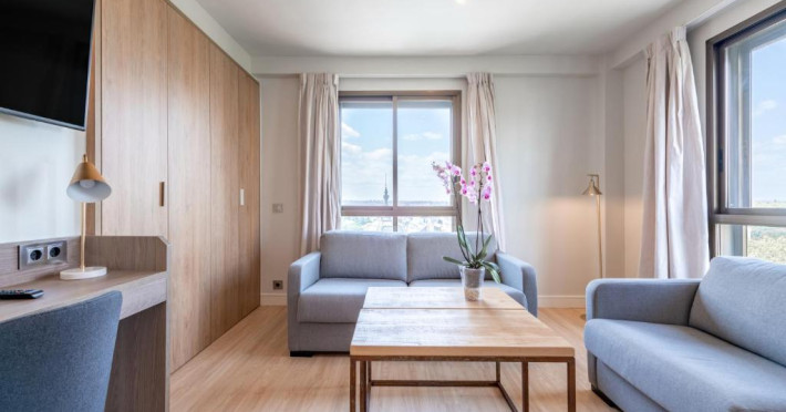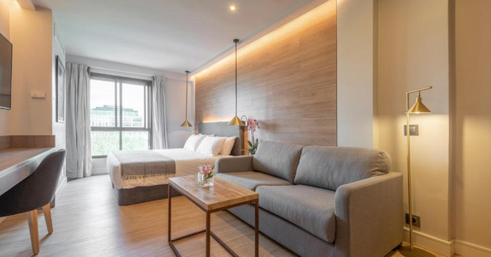 Espahotel Plaza de España are vedere la faimoasa Plaza de España din Madrid, la 5 minute de mers pe jos de Palatul Regal. Oferă apartamente studio cu bucătărie, TV prin satelit și conexiune WiFi.