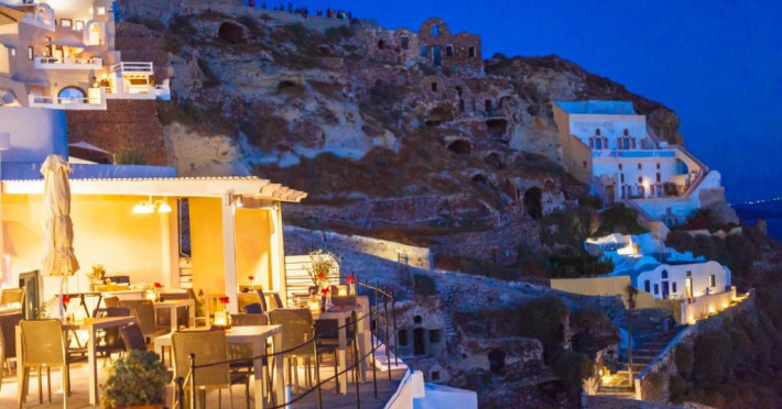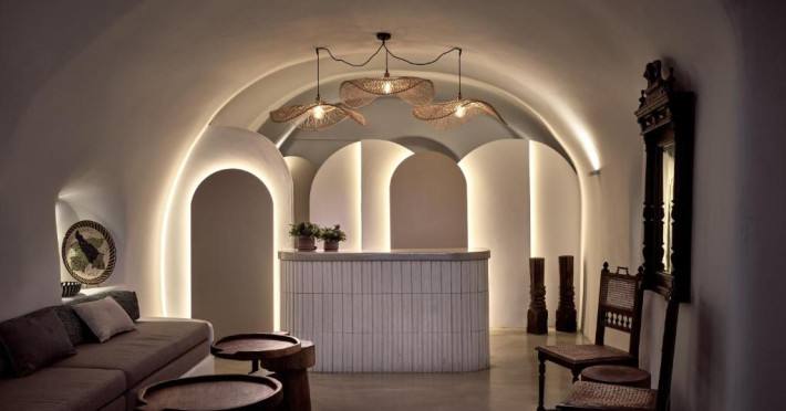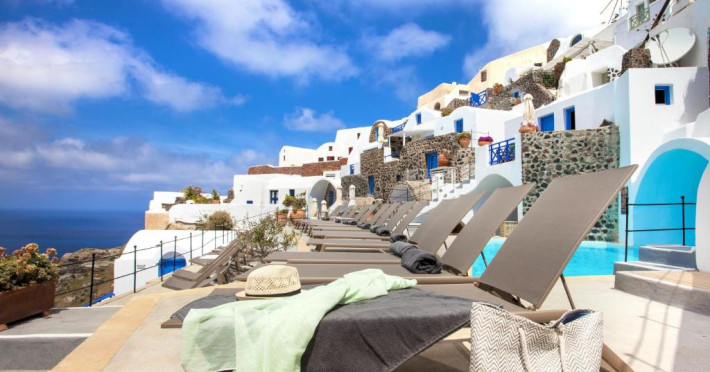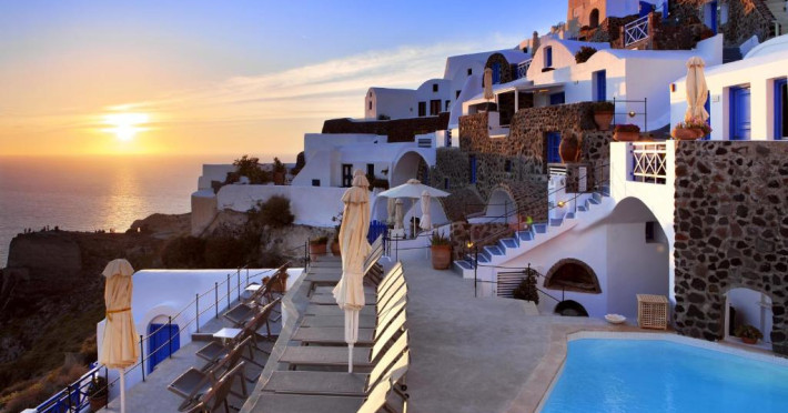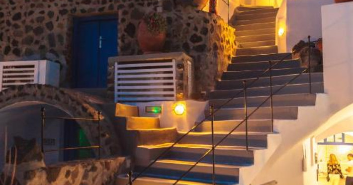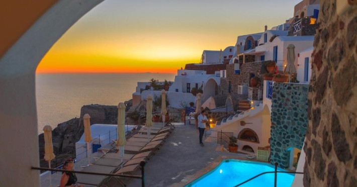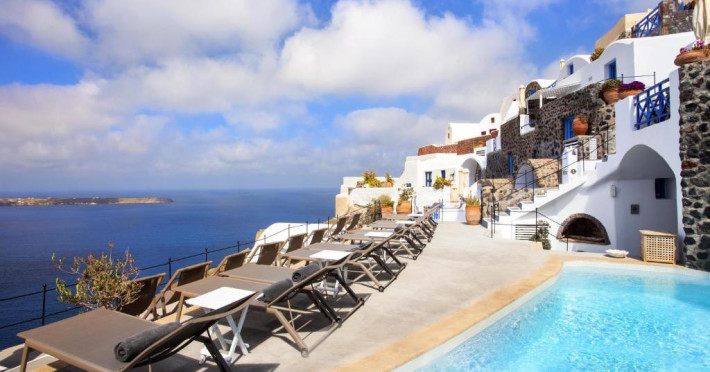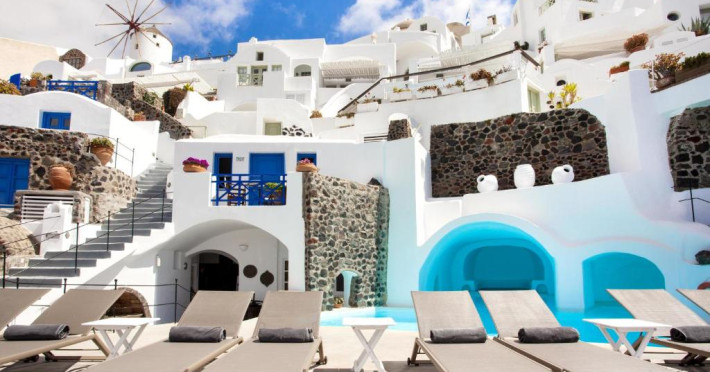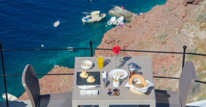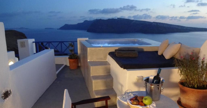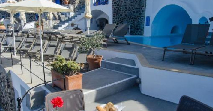 Situat pe o stancă, vizavi de vulcan și insule, Esperas din Oia are o piscină sculptată in stancă și oferă cazare cu vedere inegalabilă la Marea Egee.