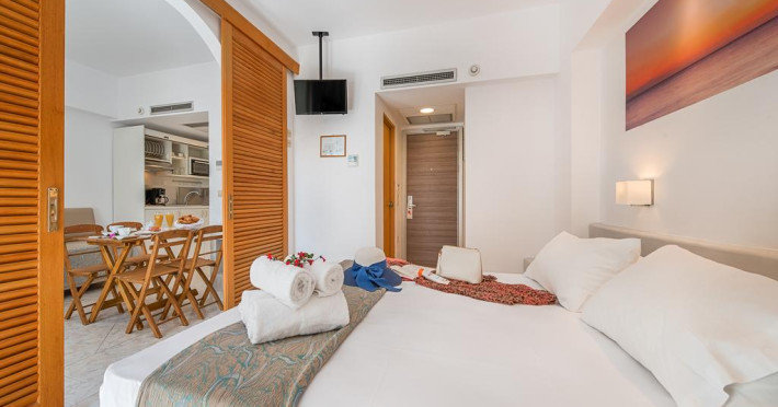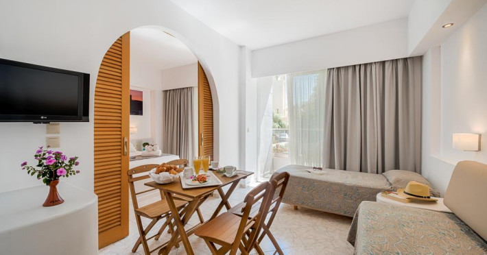 Sunt disponibile 150 camere. Fiecare cameră dispune de mașină pentru preparare cafea sau ceai. Camerele confortabile de la Esperia City au pardoseală de gresie/ marmură, aer condiționat, Tv cu canale prin satelit și seif. Unele camere au balcon, cu vedere la piscină, unde oaspeții se pot relaxa în voie. În camere există baie cu cadă sau duș ce are în dotare foehn și articole de toaletă gratuite. Oaspeții au acces gratuit la serviciul Wi-fi în camere. Curățenia in cameră se face zilnic. Proprietatea oferă camere pentru familie cu o suprafață mai mare și un număr mai mare de paturi față de cele standard.