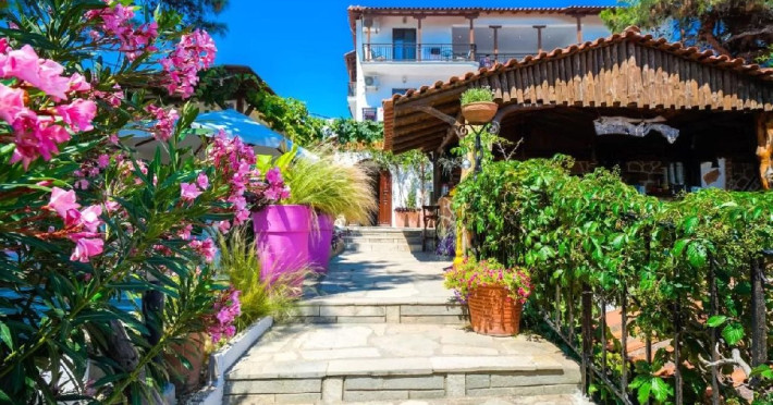 Multe camere ofera o frumoasa panorama spre mare si muntele Athos.