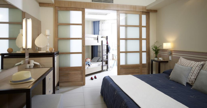 Sunt disponibile 547 camere. Camerele luminoase de la Esperides Beach Resort sunt dotate cu gresie sau parchet, aer condiționat, Tv cu canale prin satelit și seif. Oaspeții au la dispoziție serviciul de room service pentru a servi masa sau diverse băuturi. În camere există baie cu cadă sau duș ce are în dotare foehn și articole de toaletă gratuite. Oaspeții au acces gratuit la serviciul Wi-fi în camere. Camerele au balcon cu vedere la mare sau la grădină. Curățenia in cameră se face zilnic. Proprietatea oferă camere pentru familie cu o suprafață mai mare și un număr mai mare de paturi față de cele standard. Se pot rezerva de asemenea camere pentru nefumători.