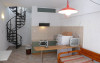 La parter se afla bucataria cu living si canapea extensibila pentru 2 persoane, baie cu dus.