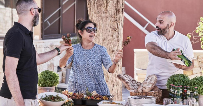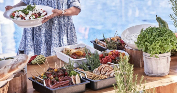 La Esperides Resort oaspeții au la dispoziție 4 restaurante unde pot savura mâncăruri delicioase, în stil bufet sau à la carte. Preparate din bucătăria mediteraneană, precum și preparate pescărești așteaptă să fie degustate în fiecare zi. Masa poate fi servită atât în interior, cît si în aer liber, pe terasă, în funcție de vreme. 2 baruri, dintre care unul la piscină, sunt disponibile cu o ofertă variată de băuturi răcoritoare și alcoolice.
