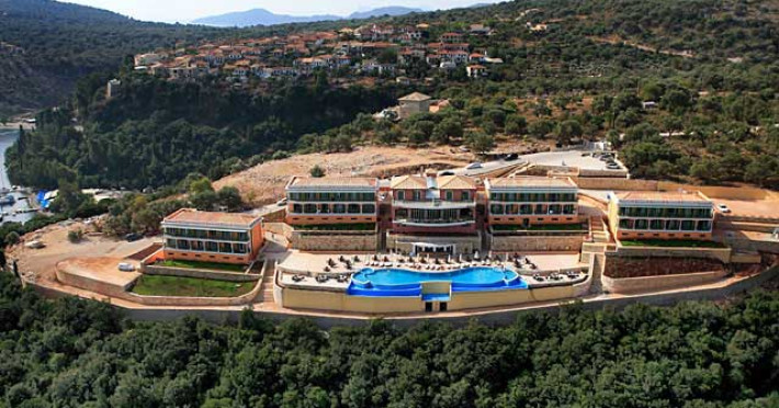 Complexul este situat la aproximativ 1 km de micul port al insulei si ofera o vedere panoramica la Marea Ionica si Insula Scorpios. Camerele spatioase ofera tot confortul necesar pentru petrecerea unui sejur de neuitat.Website