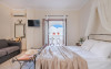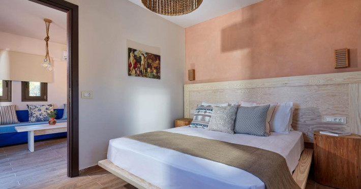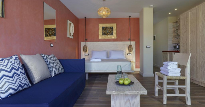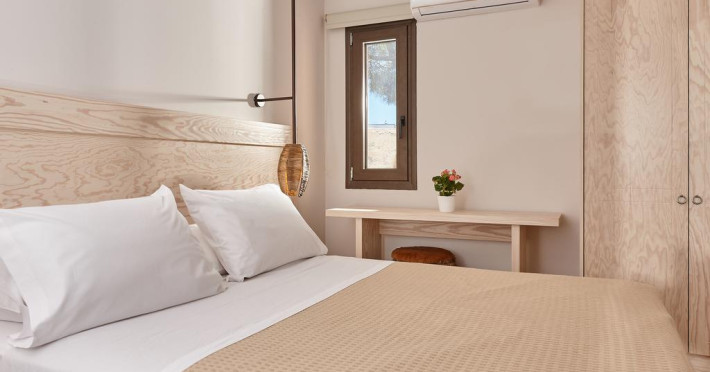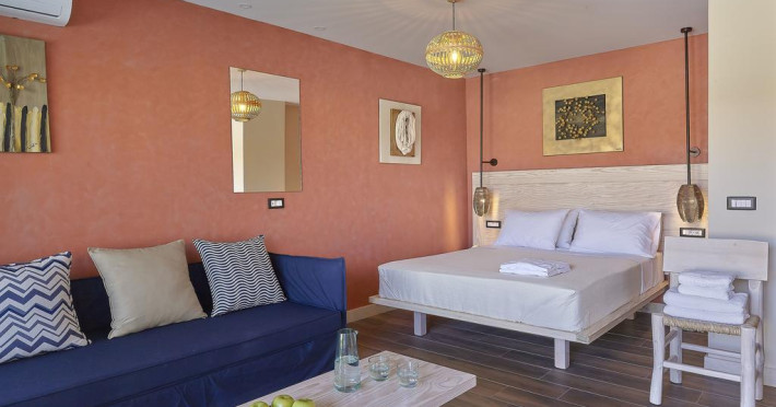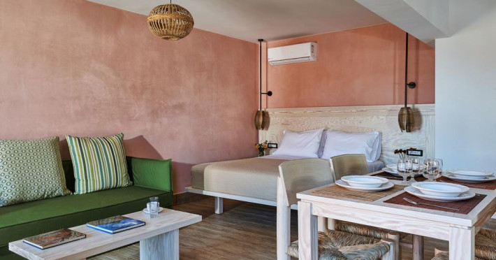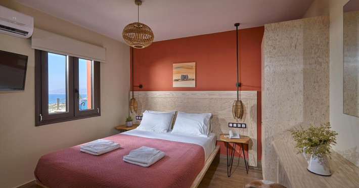 Sunt disponibile 105 camere. Fiecare cameră oferă cană-fierbător și mașină pentru prepare cafea sau ceai. Oaspeții pot solicita serviciul de room service pentru a servi masa sau diverse băuturi. Camerele confortabile de la Esperides Resort & Spa au pardoseală de gresie/ marmură, aer condiționat, Tv cu canale prin satelit și seif. În camere există baie cu cadă sau duș ce are în dotare foehn și articole de toaletă gratuite. Unele camere au balcon cu vedere la mare sau la grădină. Oaspeții au acces gratuit la serviciul Wi-fi în camere. Curățenia in cameră se face zilnic. Anumite camere au zonă de relaxare cu canapea și cadă cu hidromasaj care asigură un plus de confort și răsfăț. Fiecare unitate de cazare are frigider. De asemenea, este disponibilă o zonă de luat masa. Proprietatea oferă camere pentru familie cu o suprafață mai mare și un număr mai mare de paturi față de cele standard. Se pot rezerva de asemenea camere pentru nefumători.