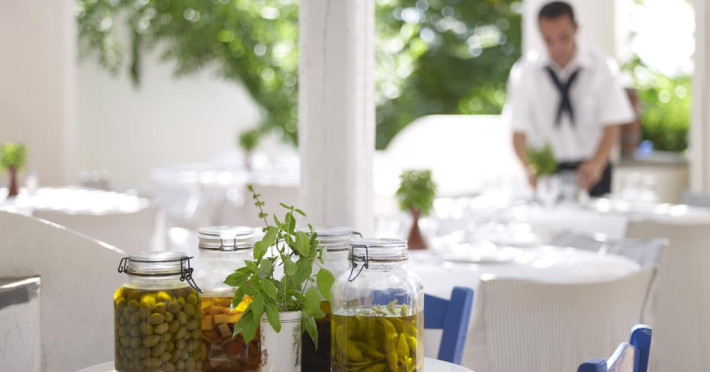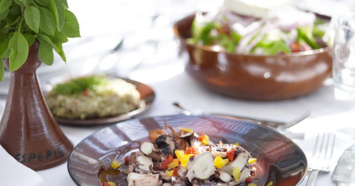 La Esperos Palace Resort oaspeții au la dispoziție 2 restaurante unde pot savura mâncăruri delicioase, în stil bufet sau à la carte. Preparate din bucătăria internațională, italiană, precum și preparate pescărești așteaptă să fie degustate în fiecare zi la micul dejun, prânz și cină. Pizza este de asemenea o opțiune culinară pentru cei gurmanzi. Masa poate fi servită atât în interior, cît si în aer liber, pe terasă, în funcție de vreme. 2 baruri, dintre care unul la piscină, sunt disponibile cu o ofertă variată de băuturi răcoritoare și alcoolice. Pentru cei cu anumite nevoi de nutriție, Esperos Palace Resort oferă meniuri pentru diete speciale.