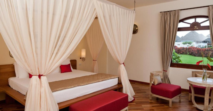 Around 25 km from a beach is located the hotel Essque Zalu Zanzibar*****. The hotel is equipped with Wi-Fi as well as parking spaces (for a fee). In the outdoor area you will find a garden as well as a pool that is open seasonally. Furthermore, outside you can find a terrace. You can store your luggage in the hotel's storage room. There is also a laundry service available at an additional cost to customers. Ironing equipment can be rented at the hotel for a fee. For your comfort there is a concierge service. Catering Your physical well-being is catered for by a restaurant. The drinks menu of the hotel includes wine. Distances- Airport: approximately at 62 km