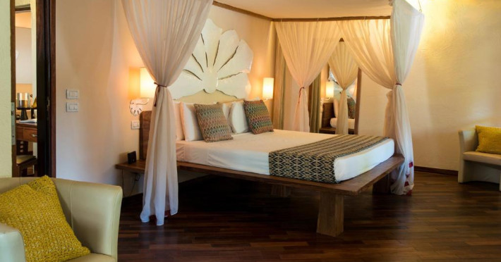Around 25 km from a beach is located the hotel Essque Zalu Zanzibar*****. The hotel is equipped with Wi-Fi as well as parking spaces (for a fee). In the outdoor area you will find a garden as well as a pool that is open seasonally. Furthermore, outside you can find a terrace. You can store your luggage in the hotel's storage room. There is also a laundry service available at an additional cost to customers. Ironing equipment can be rented at the hotel for a fee. For your comfort there is a concierge service. Catering Your physical well-being is catered for by a restaurant. The drinks menu of the hotel includes wine. Distances