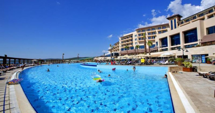 Complexul include 4 piscine, 3 tobogane cu apă şi un centru spa cu baie turcească şi saună.