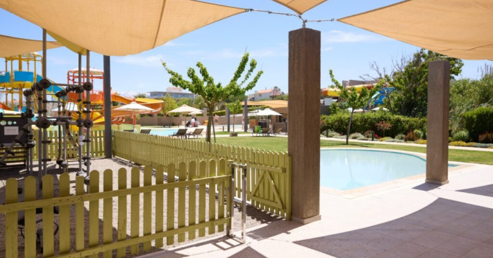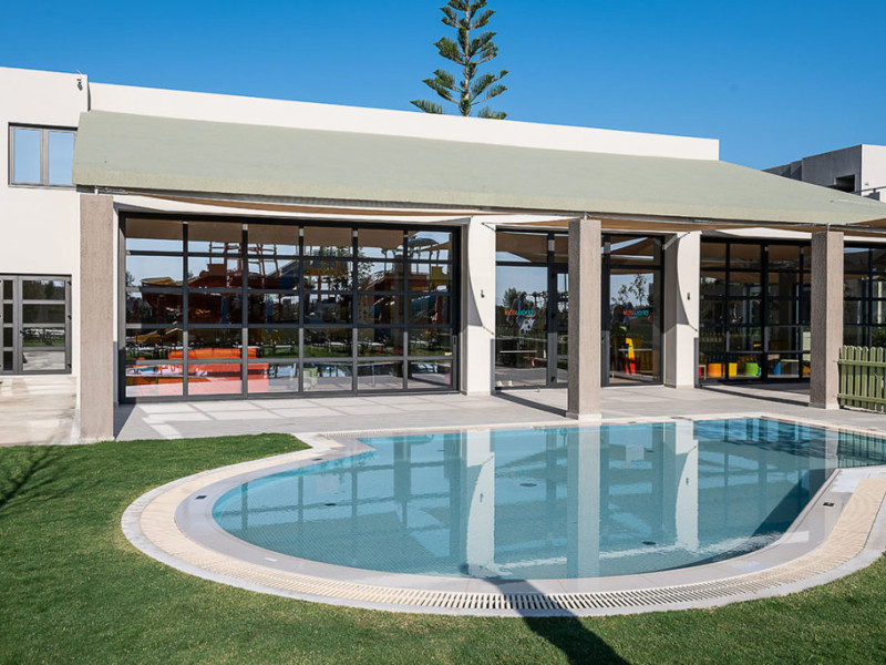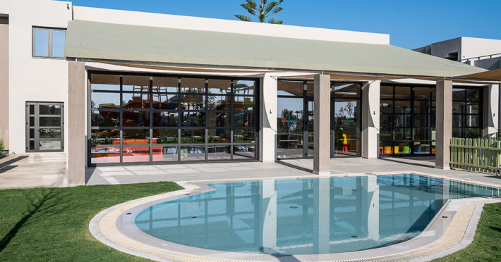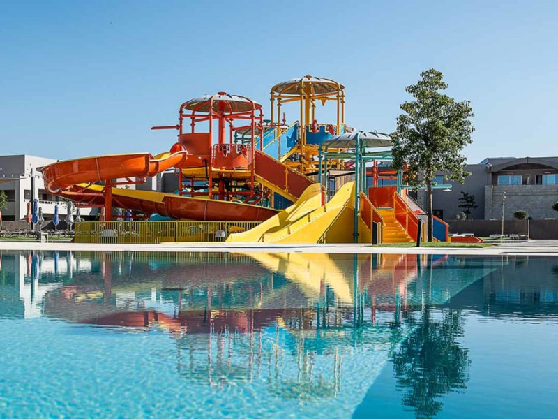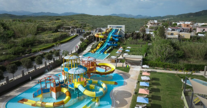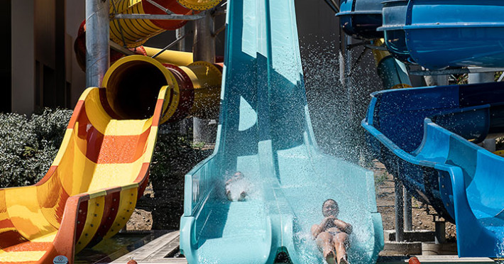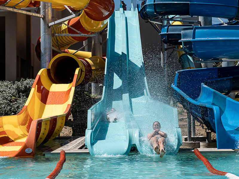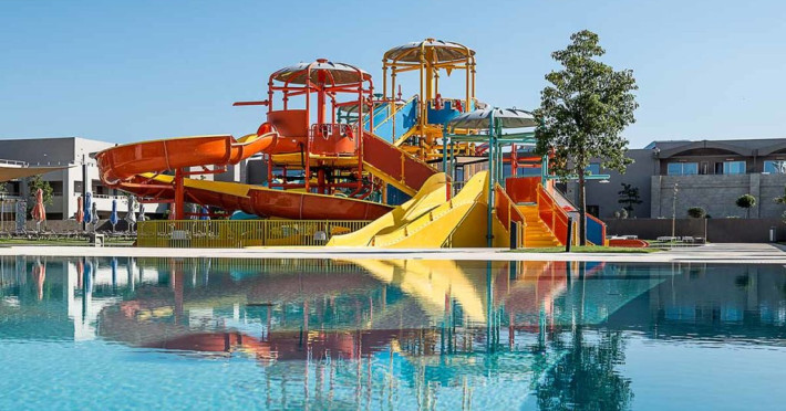 In our water park and its swimming pools, our young guests will find exciting games to exhaust their energy, make new friends, laugh and enjoy their vacation. Top-of-the-range water slides (4 fast slides), fulfilling all safety measures and a swimming pool with an amazing aqua tower, compose the most fascinating scenery for kids and adults, to experience fantastic adventures. The water park is supervised by trained personnel at all times.