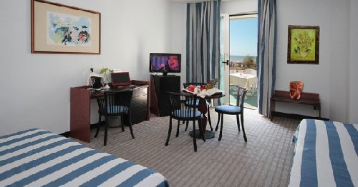 Hotelul se afla la 50 de metri fata de plaja cu nisip, localizat pe o promenada faimoasa, numita Via Bafile, cu cea mai lunga pietonala din Europa, unde sunt numeroase magazine de moda, cafenele si terase.