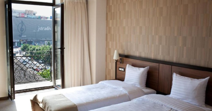 Camerele de la etajul 4 beneficiaza de vedere deosebita la Piata Unirii si la Hanul lui Manuc. Datorita locatiei centrale a hotelului, oaspetii pot ajunge cu usurinta la numeroasele baruri si restaurante din centrul vechi.