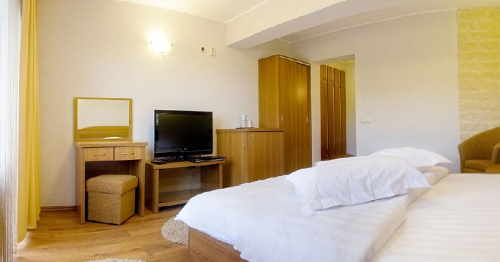 Camerele dispun de baie proprie, uscator de par, prosoape, papuci de casa, televizor LCD, canale TV prin cablu, internet Wi-Fi.