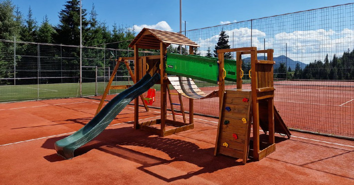 Loc de joaca in aer liber, teren de minifotbal si tenis.