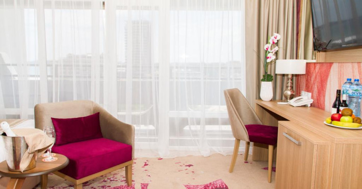 Europe Hotel & Casino Sunny Beach se află la 3,3 km de Orașul vechi Nesebăr și la 21 km de Aeroportul Burgas. La cerere proprietatea organizează transfer la/de la aeroport.