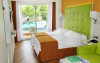 Camerele au decor luminos in stil mediteranean și includ un balcon privat. Acestea sunt dotate cu TV prin satelit, aer condiționat și baie privată cu uscător de păr. Un seif este gratuit in toate camerele, indiferent de categoria lor