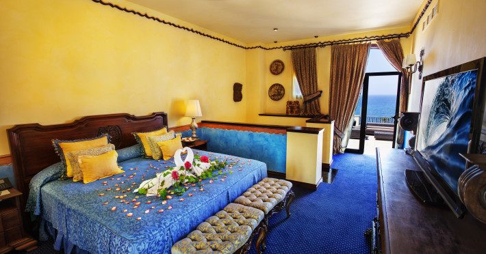 Around 400 m from a public sandy/rocky/stone beach and approximately 200 m from the sea is located the hotel Hotel Europe Villa Cortes. The nearest bars and restaurants can be found at a distance of around 200 m. The old town is around 1 km away. A supermarket and other shops you also reach after approximately 200 m. There is a shuttle between the hotel and the airport (for a fee). The beach is awarded a blue flag. On the beach there is also a clubhouse. Here, there are cushions for a fee available. Cold drinks are served at the bar on the beach. There is a promenade where you can take leisurely walks. The air-conditioned hotel has a 24h reception (check-in is possible around the clock), a lobby bar, Wi-Fi, internet access, 5 lifts, a hairdresser, showers and changing rooms, a first aid kit, parking spaces (limited and for a fee) as well as a TV lounge with satellite TV. In the outdoor area of the property you will find a garden as well as a seasonally heated and supervised salt water pool (open all year), where sun loungers, sun umbrellas and pool towels are available for free. There is also a separate children's pool. Furthermore, outside you can find a sun terrace. You can store your valuables in the safe, and your luggage in the hotel`s storage room. For very young guests, kid`s chairs, highchairs and cots can be provided. There is also a laundry service available at an additional cost to customers. Ironing equipment can be rented at the hotel for a fee. For your comfort, in addition to the hotel pages and the concierge service, there is also a room service. If necessary, you can contact the medical centre at any time (for a fee). The energy supply is 220 Volts. For conventions and other business meetings, the hotel offers EXTRA_FEE conference rooms with a total of 200 seats, a reception, tables, a video projector, overhead projector, internet access as well as a catering and translation service. A photographer can also be ordered from the hotel for business events. If you want to explore the holiday region, you can use the car and motorbike rental service close to the hotel (extra fee). At the reception, tickets are offered for excursions in the area. Euro/Master Card and Visa are accepted as means of payment. Due to its barrier-free facilities , such as barrier-free entrances, wheelchair accessible rooms and wheelchair-accessible bathrooms, the hotel is also suitable for wheelchair users. Catering As catering services the hotel offers half board and breakfast only. Breakfast is offered from the buffet. Enjoy your lunch à la carte. Dinner is served as a set meal or à la carte. For the meals, there are a buffet restaurant with terrace (calorie-reduced, gluten-free and vegetarian dishes) and several bars, the cafeteria as well as the pool bar. Distances- Discotheque: approximately at 500 m