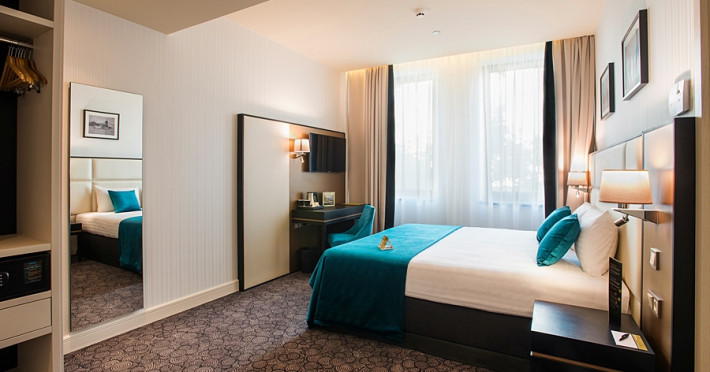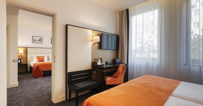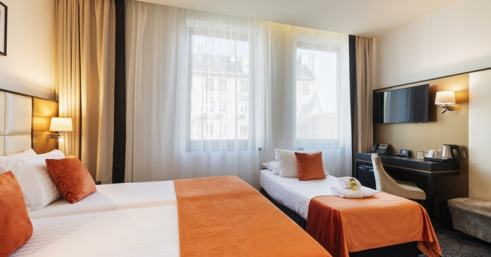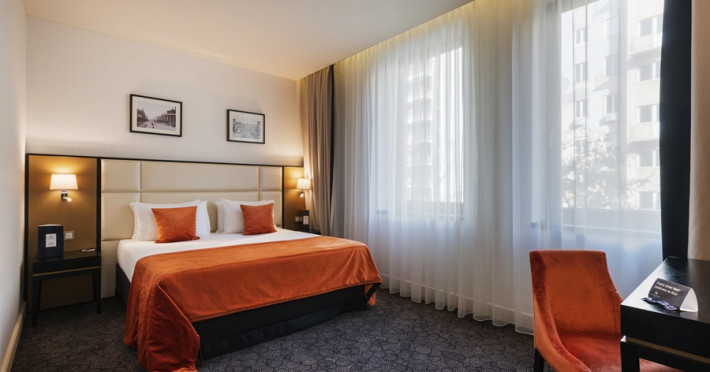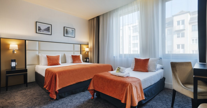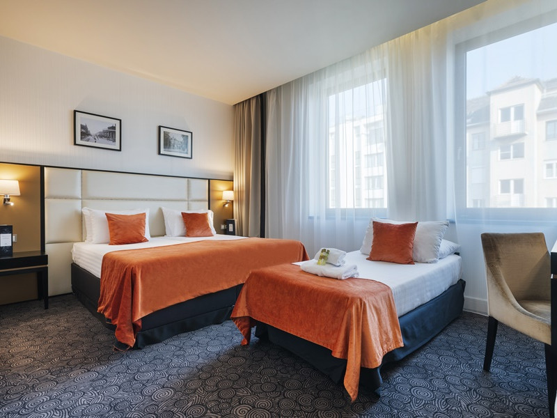 Built in 2016, the Eurostars Danube Budapest 4* hotel is located in the heart of Budapest, just a short walk away from Dek Square. With modern and practical facilities, the Eurostars Danube Budapest 4* hotel has 101 rooms and a wide range of services for the comfort of our guests. Situated next to the luxurious Andrssy Avenue and the Jewish quarter, our hotel guests can enjoy a wide range of restaurants, bars, clubs and tourist attractions. The hotels location means you can travel comfortably around the city using public transport, as you can find metro stations and bus stops just a few minutes away from the hotel. At the Eurostars Danube Budapest 4* hotel we sure to offer you the best possible services throughout your stay, which is why provide a restaurant, 24 hour reception, airport transfer service (at an extra charge) and breakfast buffet every morning. In addition, all our rooms are fully-equipped and decorated to suit your needs. After a day of tourism around Budapest, come and enjoy the hotel bar and try one of our freshly-prepared cocktails. On line check-out available.Datorita dinamicitatii domeniului disponibilitatea ofertelor se modifica de la un moment la altul. De aceea ofertele sunt valabile in limita locurilor disponibile. Agentia nu este responsabila pentru eventualele neconcordante care pot aparea intre informatiile privind tarifele si alte detalii din site si informatiile primite in agentie. In aceste cazuri vor avea prioritate, intotdeauna, informatiile primite in agentie.