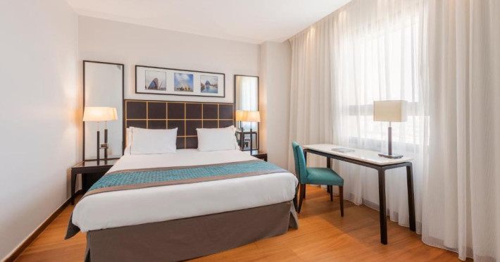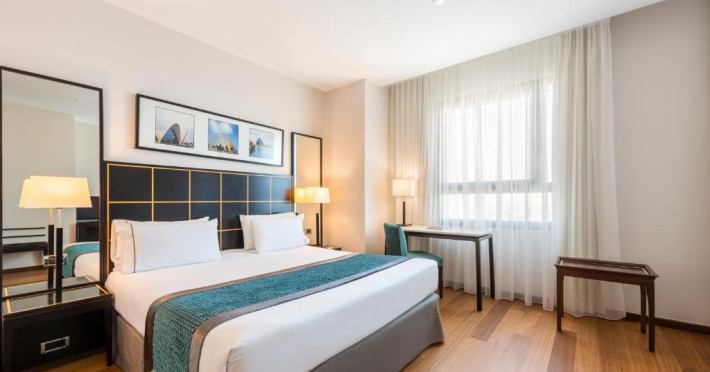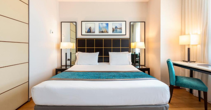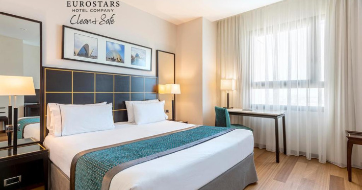 Acest hotel modern, situat langă Centrul de Congrese din Valencia, oferă vedere la centrul orașului si acces gratuit la internet WiFi. Hotelul Eurostars are sală de gimnastică, saună si piscină pe acoperiș. Toate camerele de la Gran Valencia au aer condiționat, TV cu ecran plat cu canale prin satelit, seif și minibar. Hotelul are bar, iar restaurantul servește preparate tipice din bucătăria mediteraneană, precum fructe de mare proaspete. Este disponibil și room service. Micul dejun la pachet este servit in cameră. Eurostars Gran Valencia oferă servicii de spălătorie si curățătorie chimică. Centrul vechi al orașului Valencia este la 3 km. In apropiere există stații de metrou, tren si autobuz.