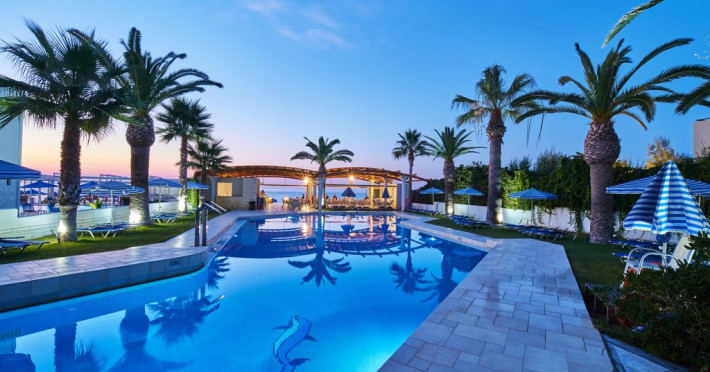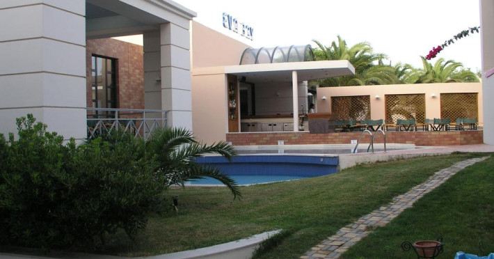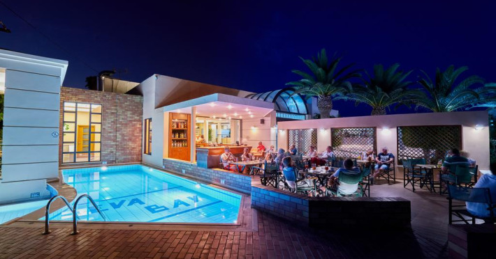 Amplasată în Adelianos Kampos (Creta-Rethymno), Eva Bay Hotel este o proprietate de 4 stele care oferă plajă privată cu șezlonguri și umbrele de soare și 2 piscine exterioare. Proprietatea are servicii de recepție cu program non - stop și închirieri auto. Se oferă acces gratuit la internet Wi-fi în spațiile publice.