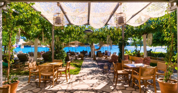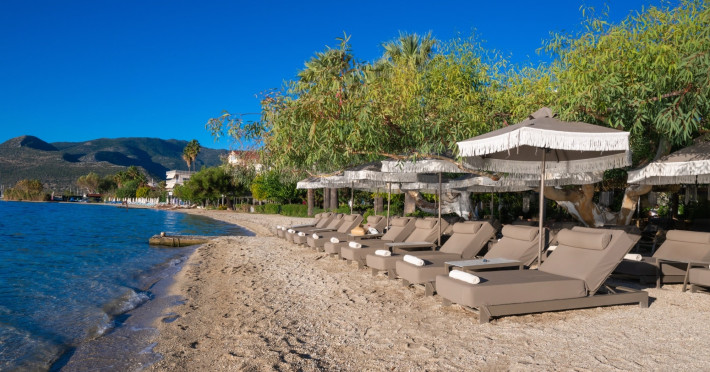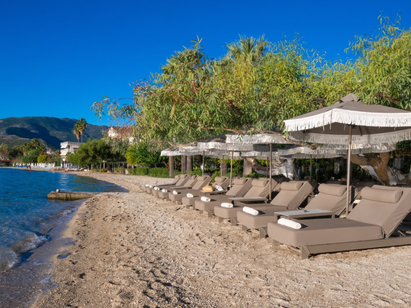 Hotelul EVA BEACH vă întâmpină călduros în fiecare zi! Vederea la marea ionică și munții luxurianti, pe care îi puteți admira de la balcon, este cu adevărat uimitoare! Relaxați-vă și distrați-vă! Respiră mirosul de flori și simte briza sărată a mării. Vacanțele dumneavoastră tocmai au început în camerele noastre bine mobilate, cu baie proprie, telefon și balcoane cu vedere la mare. Hotelul nostru oferă, de asemenea, acces la internet și servicii de fax. Vă veți bucura de apusul soarelui, de vinuri de la barul hotelului nostru și de muzică în timp ce noaptea preia controlul și luna își face calea argintie peste apa de mare.