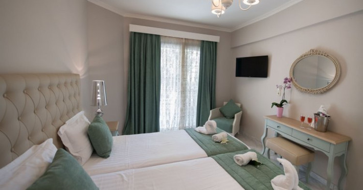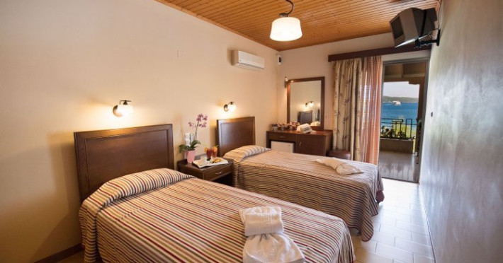 Situat intr-un loc idilic, hotelul Eva Beach din Nidri, insula Lefkada, ofera privelisti unice spre mare si spre golful din Nidri, cu apele sale limpezi si plajele curate.Conditii de cazareHotelul ofera cazare in camere de diferite categorii: