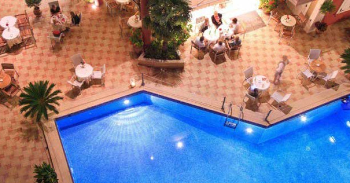 Piscina exterioara, salon de mic dejun, bar si restaurant. Piscina exterioara este comuna cu cea a hotelurilor Stilvi si Evilion.