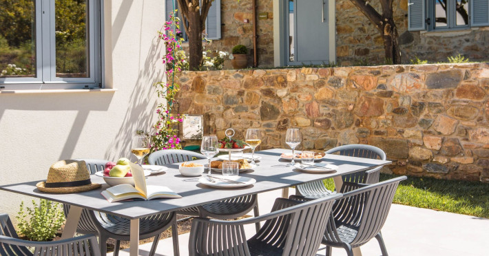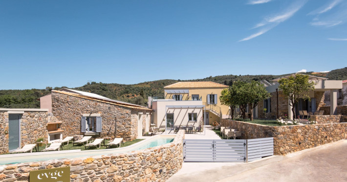 Our boutique 3* hotel is located at the Nio Chorio of Voukolies village and at a small high neighborhood with the name Lakkoi, in the center of the regional unit of Chania at Platanias Municipality and, simultaneously, right in the heart of nature. A village on the top of incredible hills with a view up to the Cretan Sea but at the same time filled with lush greenery, in close proximity to paths of unparalleled beauty, groves that make fantastic day trips, and awarded beaches with magnificent azure water. Fields of numerous orange and lemon trees, as much as an abundance of olive trees and the deep blue sky are also parts of a landscape that changes colors along with the seasons. Evgeâs location makes it an ideal destination for the ultimate relaxation experience, during any season of the year, since its sustainability will make you feel in balance with the real Cretan nature.Datorita dinamicitatii domeniului disponibilitatea ofertelor se modifica de la un moment la altul. De aceea ofertele sunt valabile in limita locurilor disponibile. Agentia nu este responsabila pentru eventualele neconcordante care pot aparea intre informatiile privind tarifele si alte detalii din site si informatiile primite in agentie. In aceste cazuri vor avea prioritate, intotdeauna, informatiile primite in agentie.