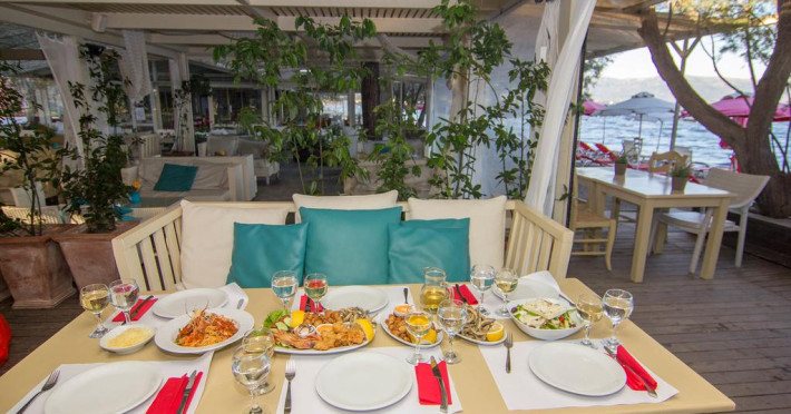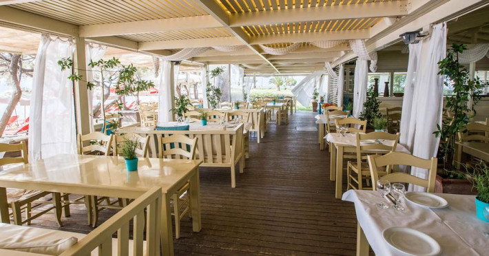 La Eviana Beach oaspeții au la dispoziție un restaurant care servește mâncare à la carte. Preparate din bucătăria grecească așteaptă să fie degustate în fiecare zi. Masa poate fi servită atât în interior, cît si în aer liber, pe terasă, în funcție de vreme. Oaspeţii pot avea diverse băuturi răcoritoare sau alcoolice la bar.