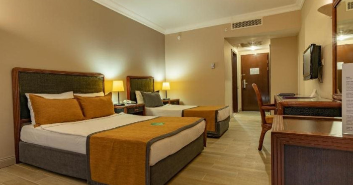Aer conditionat, tv satelit, baie cu cada/dus, telefon, frigider, uscator de par, balcon
