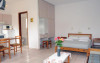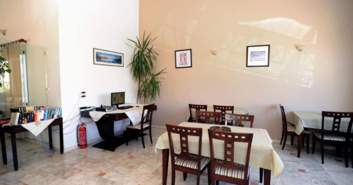 Micul dejun include preparate calde și reci. Preparate cretane sunt servite la prânz și cină.
