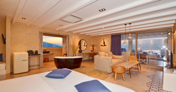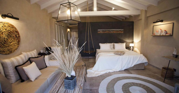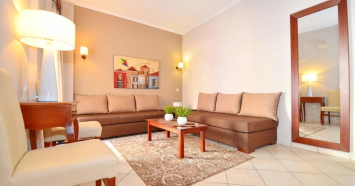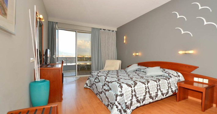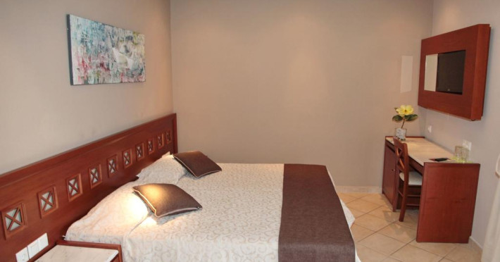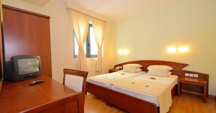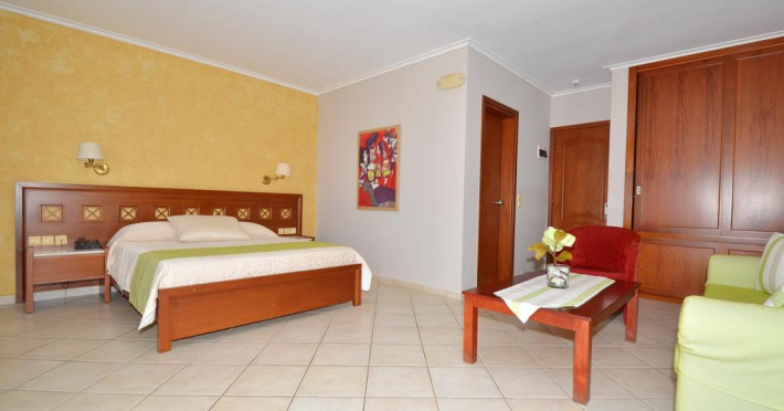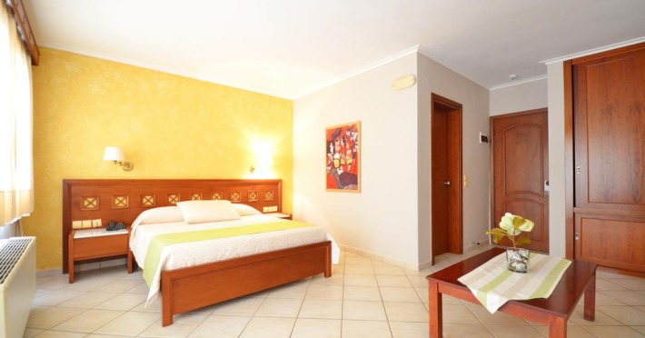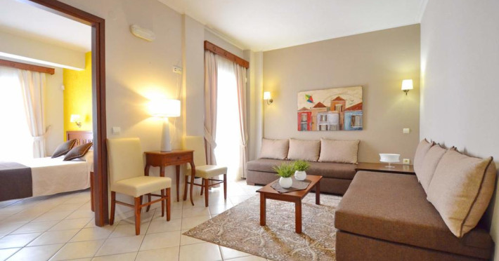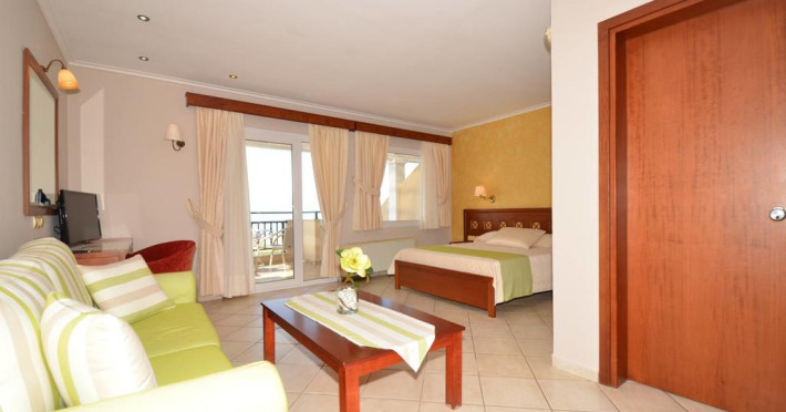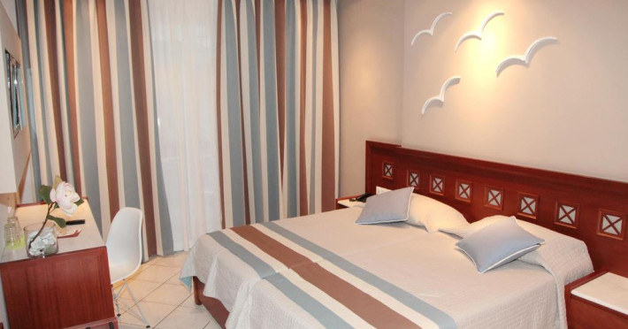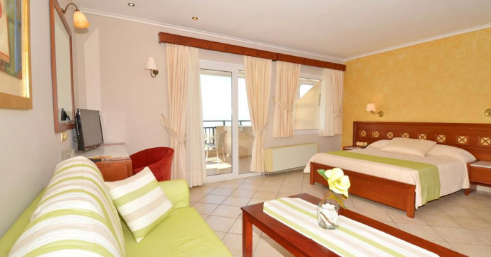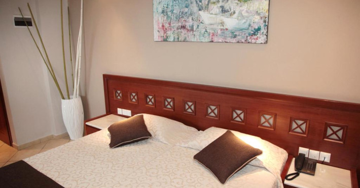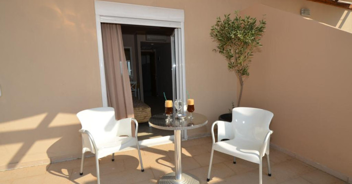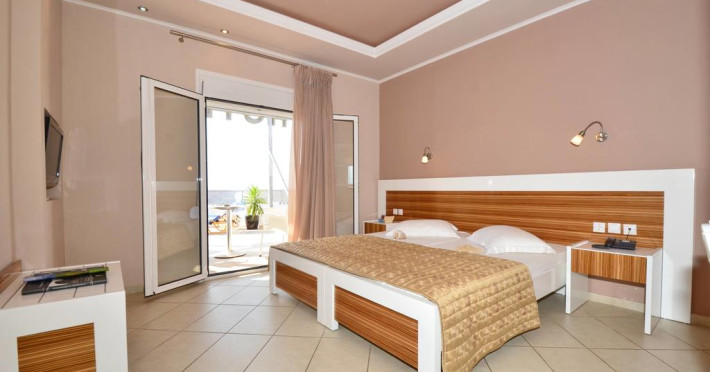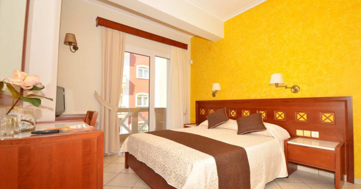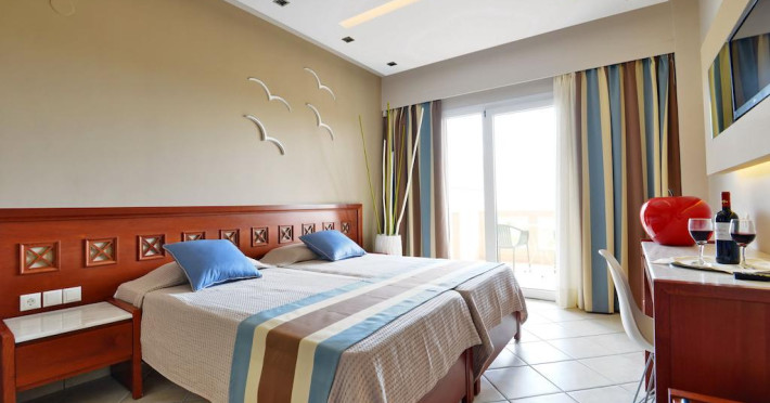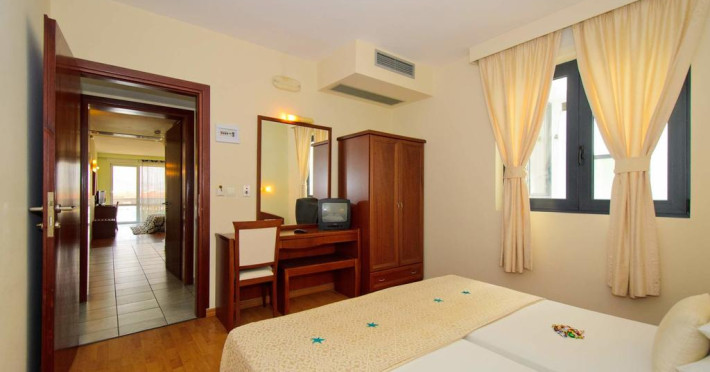 Sunt disponibile 62 camere. Unele camere au balcon, cu vedere la piscină, unde oaspeții se pot relaxa în voie. În camere există baie cu cadă sau duș ce are în dotare foehn și articole de toaletă gratuite. Camerele confortabile de la Evilion Sea & Sun Hotels au pardoseală de gresie/ marmură, aer condiționat, Tv cu canale prin satelit și seif. Fiecare cameră dispune de un aparat pentru preparare cafea sau ceai, cană-fierbător și minibar. Oaspeții pot solicita serviciul de room service pentru a servi masa sau diverse băuturi. Oaspeții au acces gratuit la serviciul Wi-fi în camere. Proprietatea oferă camere pentru familie cu o suprafață mai mare și un număr mai mare de paturi față de cele standard.