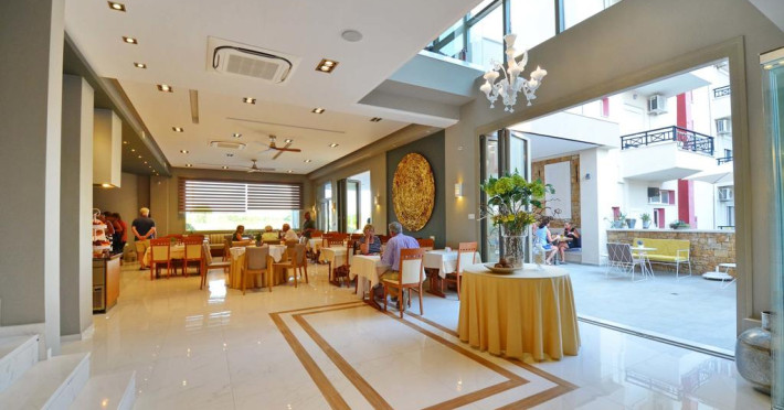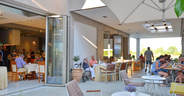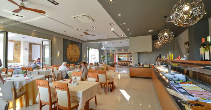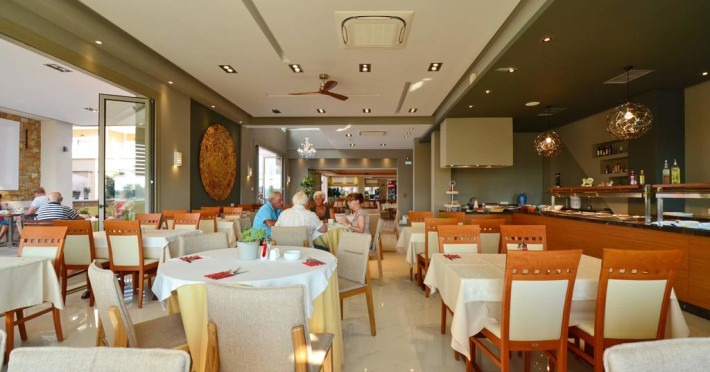 La Evilion Sea & Sun Hotels oaspeții au la dispoziție un restaurant care servește mâncare à la carte. Preparate din bucătăria grecească și internațională așteaptă să fie degustate în fiecare zi la micul dejun, prânz și cină. Masa poate fi servită atât în interior, cît si în aer liber, pe terasă, în funcție de vreme. Oaspeţii pot avea diverse băuturi răcoritoare sau alcoolice la bar.