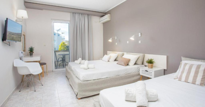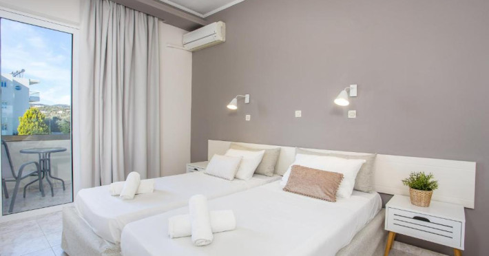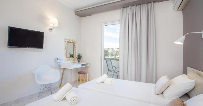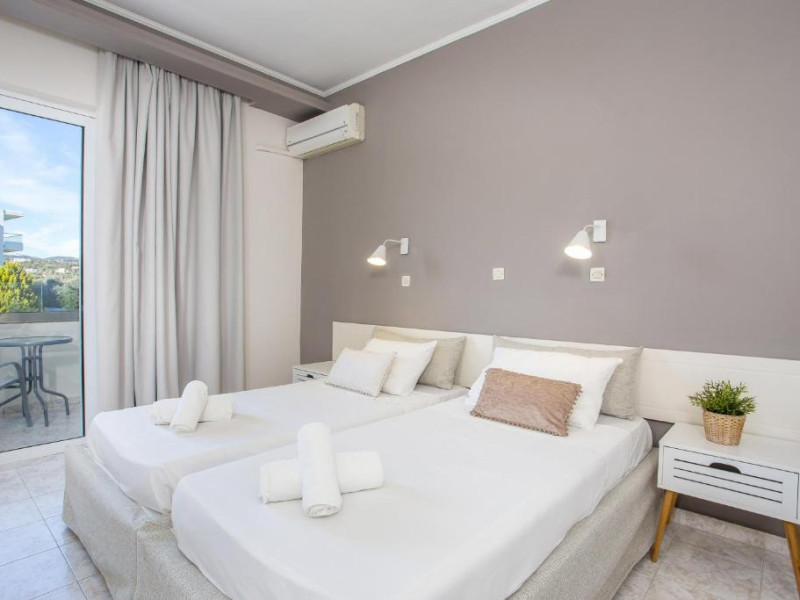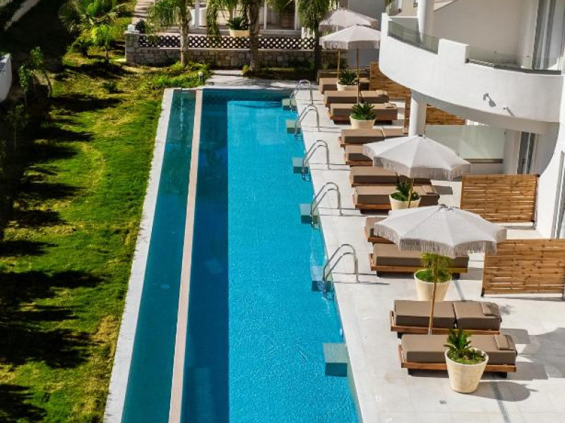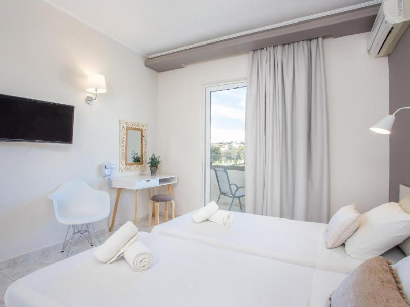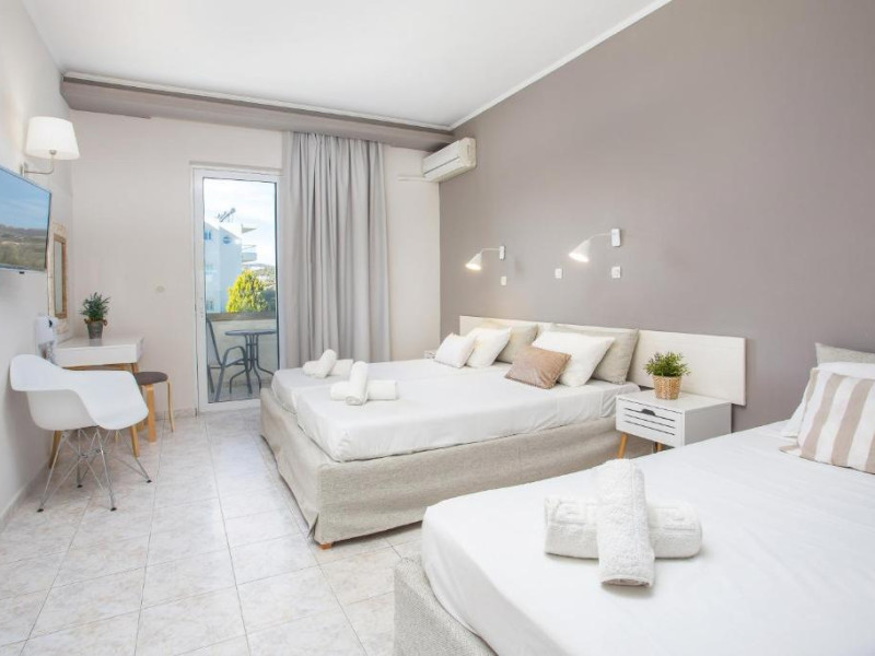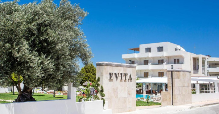 Hotelul Evita Elite este un hotel de 4 stele recent renovat, situat in satul de coastă Faliraki, la aproximativ 180 m de cea mai apropiată plajă cu nisip și la 10 minute de mers pe jos de centrul orașului Faliraki. Hotelul Evita Elite oferă camere duble și familiale pentru pană la 4 persoane, toate decorate contemporan și dotate cu izolare fonică, aer condiționat individual, Wi-Fi gratuit, TV prin satelit și balcon sau terasă mobilată cu vedere la piscină, grădină și mare.