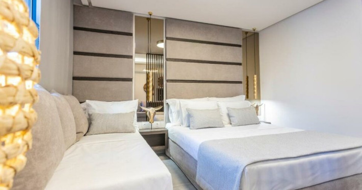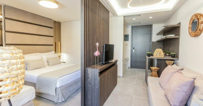 Evitel Luxury Living offers a warm and clean ambience within a serene and calm family climate and great assistance. Independent rooms that come up to each guestâs expectations since they provide more than the standard conveniences. ROOMS: Deluxe Double Ground Floor 2-2 pax, max 2 adults Deluxe Family Suite 2-2 pax, max 2 adults Deluxe Junior Suite 2-2 pax, max 2 adults Deluxe Junior Suite Ground Floor 2-2 pax, max 2 adults Deluxe Suite 2 Bedroom 2-6 pax, max 6 adults Deluxe Suite 2 Bedroom with Jacuzzi 2-6 pax, max 6 adults Deluxe Superior 2-3 pax, max 3 adults Villa Evi 2-8 pax, max 8 adultsDatorita dinamicitatii domeniului disponibilitatea ofertelor se modifica de la un moment la altul. De aceea ofertele sunt valabile in limita locurilor disponibile. Agentia nu este responsabila pentru eventualele neconcordante care pot aparea intre informatiile privind tarifele si alte detalii din site si informatiile primite in agentie. In aceste cazuri vor avea prioritate, intotdeauna, informatiile primite in agentie.
