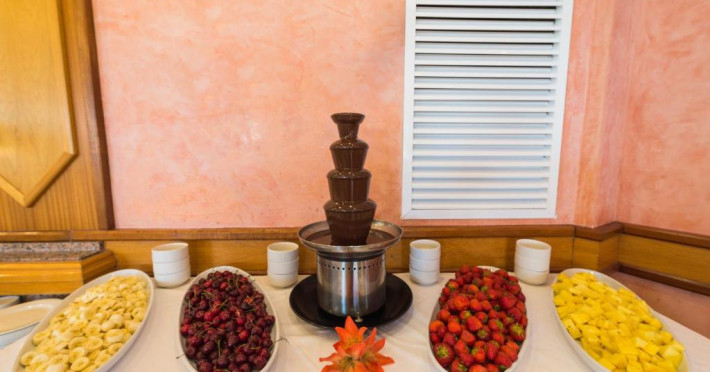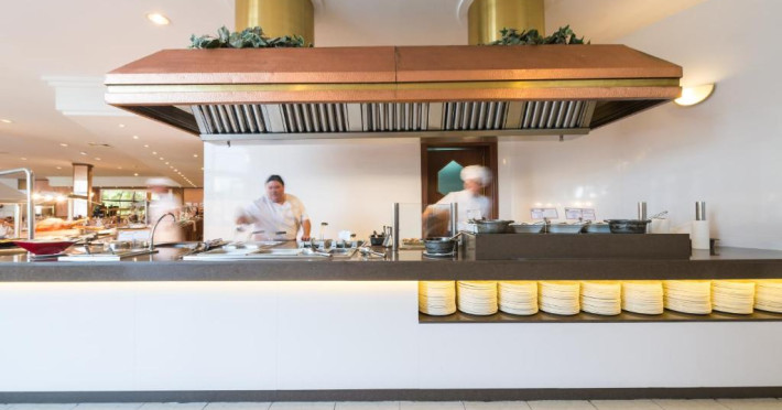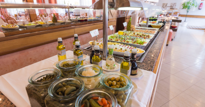 Locurile unde se poate lua masa cuprind o sală de mese, o cafenea și un bar. Clienții sunt răsfățați din punct de vedere culinar în restaurantul pentru nefumători cu aer condiționat și scaune înalte pentru copii. Unitatea de cazare oferă pentru masă demipensiune și regim all inclusive. Clienții de la all inclusive se bucură de oferte speciale, ca de exemplu gustări, de asemenea există o selecție de băuturi alcoolice și nealcoolice. Un mic dejun delicios îi îmbie dimineața pe clienți afară din paturi. Prânzul (à la carte și meniu) și cina (à la carte) sunt pregătite în mod diversificat. La cerere se pregătesc și mese fără gluten. O atracție deosebită este gătitul în fața musafirilor.