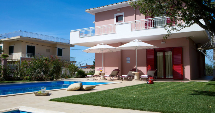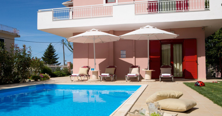 Our decision to create Exanthia Villas in our beloved island of Lefkas, in the village where we grew up and spent all the summers of our lives, aims at making your own holidays dreamy! The idyllic scenery, which combines the spectacular view of the cerulean Ionian waters with the serenity of nature and the quietness of the countryside, will offer you moments of relaxation and carelessness. With your family or friends, with or without kids, Exanthia Villas is the ideal destination. The simplicity and the aesthetic quality of our apartments, blending in with surroundings of insouciance as well as the delicate fragrance of the flowers will rejuvenate you! The calmness of having your breakfast in the balcony, the refreshing dive in the pool at noon, the breathtaking sunset in the afternoon or the breeze as evening falls; any time of the day you prefer, Exanthia villas will be an unforgettable experience and the best opportunity for you to discover the spirit of Greek Philoxenia (hospitality)!Enjoy your vacation in Exanthia, Lefkada by visiting the wonderful nearby beaches (within 12km by car from our property). You will fall in love with them.Our decision to create Exanthia Villas in our beloved island of Lefkas, in the village where we grew up and spent all the summers of our lives, aims at making your own holidays dreamy! The idyllic scenery, which combines the spectacular view of the cerulean Ionian waters with the serenity of nature and the quietness of the countryside, will offer you moments of relaxation and carelessness. With your family or friends, with or without kids, Exanthia Villas is the ideal destination. The simplicity and the aesthetic quality of our apartments, blending in with surroundings of insouciance as well as the delicate fragrance of the flowers will rejuvenate you! The calmness of having your breakfast in the balcony, the refreshing dive in the pool at noon, the breathtaking sunset in the afternoon or the breeze as evening falls; any time of the day you prefer, Exanthia villas will be an unforgettable experience and the best opportunity for you to discover the spirit of Greek Philoxenia (hospitality)!Enjoy your vacation in Exanthia, Lefkada by visiting the wonderful nearby beaches (within 12km by car from our property). You will fall in love with them.