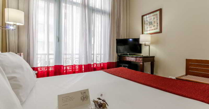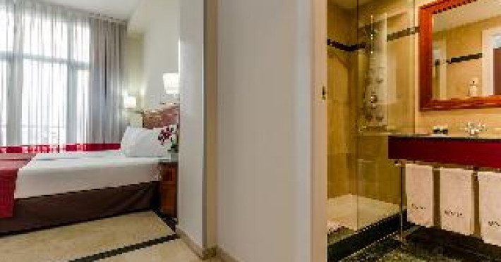 With a stay at Hotel EXE Laietana Palace in Barcelona (Downtown Barcelona), you'll be a 3-minute walk from Barcelona Cathedral and 8 minutes by foot from La Rambla. This 4-star hotel is 0.4 mi (0.6 km) from Port de Barcelona and 0.7 mi (1.1 km) from Plaça de Catalunya. Make use of convenient amenities such as complimentary wireless Internet access, concierge services, and a reception hall. Make yourself at home in one of the 62 air-conditioned rooms featuring minibars and plasma televisions. Complimentary wireless Internet access is available to keep you connected. Conveniences include safes, as well as phones with free local calls. Take advantage of the hotel's room service (during limited hours). Buffet breakfasts are available daily from 7:30 AM to 10:30 AM for a fee. Featured amenities include dry cleaning/laundry services, a 24-hour front desk, and luggage storage. Distances are displayed to the nearest 0.1 mile and kilometer.Barcelona Cathedral - 0.3 km/0.2 mi- Basilica de Santa Maria del Mar - 0.3 km/0.2 mi- Barcelona City Council - 0.3 km/0.2 mi- Picasso Museum - 0.3 km/0.2 mi- Port Vell - 0.5 km/0.3 mi- Portal de l'Angel - 0.5 km/0.3 mi- Pompeu Fabra University - 0.6 km/0.4 mi- Palau de la Música Catalana - 0.6 km/0.4 mi- El Born Centre Cultural - 0.6 km/0.4 mi- La Rambla - 0.6 km/0.4 mi- Port de Barcelona - 0.6 km/0.4 mi- Plaça Reial - 0.7 km/0.4 mi- Gran Teatre del Liceu - 0.7 km/0.4 mi- Parc de la Ciutadella - 0.7 km/0.4 mi- Palau Güell - 0.8 km/0.5 mi. The preferred airport for Hotel EXE Laietana Palace is Barcelona El Prat Airport (BCN) - 16.3 km/10.1 mi.With a stay at Hotel EXE Laietana Palace in Barcelona (Downtown Barcelona), you'll be a 3-minute walk from Barcelona Cathedral and 8 minutes by foot from La Rambla. This 4-star hotel is 0.4 mi (0.6 km) from Port de Barcelona and 0.7 mi (1.1 km) from Plaça de Catalunya. Make use of convenient amenities such as complimentary wireless Internet access, concierge services, and a reception hall. Make yourself at home in one of the 62 air-conditioned rooms featuring minibars and plasma televisions. Complimentary wireless Internet access is available to keep you connected. Conveniences include safes, as well as phones with free local calls. Take advantage of the hotel's room service (during limited hours). Buffet breakfasts are available daily from 7:30 AM to 10:30 AM for a fee. Featured amenities include dry cleaning/laundry services, a 24-hour front desk, and luggage storage. Distances are displayed to the nearest 0.1 mile and kilometer.Barcelona Cathedral - 0.3 km/0.2 mi- Basilica de Santa Maria del Mar - 0.3 km/0.2 mi- Barcelona City Council - 0.3 km/0.2 mi- Picasso Museum - 0.3 km/0.2 mi- Port Vell - 0.5 km/0.3 mi- Portal de l'Angel - 0.5 km/0.3 mi- Pompeu Fabra University - 0.6 km/0.4 mi- Palau de la Música Catalana - 0.6 km/0.4 mi- El Born Centre Cultural - 0.6 km/0.4 mi- La Rambla - 0.6 km/0.4 mi- Port de Barcelona - 0.6 km/0.4 mi- Plaça Reial - 0.7 km/0.4 mi- Gran Teatre del Liceu - 0.7 km/0.4 mi- Parc de la Ciutadella - 0.7 km/0.4 mi- Palau Güell - 0.8 km/0.5 mi. The preferred airport for Hotel EXE Laietana Palace is Barcelona El Prat Airport (BCN) - 16.3 km/10.1 mi.