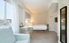 Camerele luminoase combină designul modern cu elementele mediteraneene și sunt dotate cu aer condiționat, TV cu ecran plat, minibar și balcon. Majoritatea oferă vederi spre grădină sau piscină.
