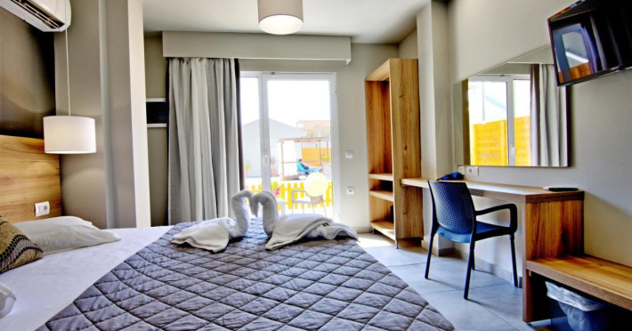 aer condiționat, birou, fierbător, frigider, seif, TV cu ecran plat, baie privată cu duș, precum și un balcon. Camerele de la Exotica Hotel & Spa by Zante Plaza au lenjerie de pat și prosoape.