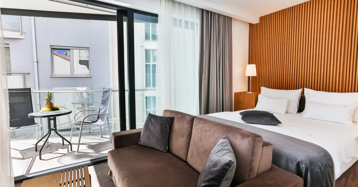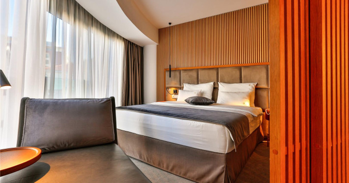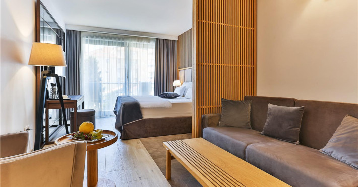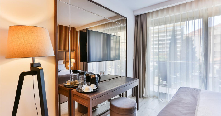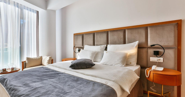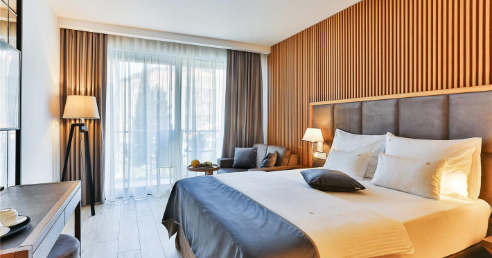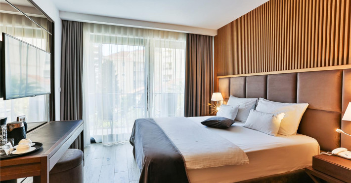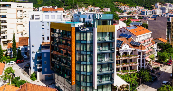 Hotel Fagus **** is attractively located in the heart of Budva â between the old town and The Slovenska Beach â the most famous beach in Montenegro. This is a lovely new hotel with an impressive rooftop pool and a wellness center. Nearby are restaurants, a shopping mall, a supermarket and, above all, a beach with promenades, bars and famous clubs.Rooms at Hotel Fagus **** are modernly elegant, discreet and comfortable. All are air-conditioned, equipped with a minibar, safe, flat-screen satellite TV, electric kettle and balcony connected by Wi-Fi. The bathroom has a shower, make-up mirror, hairdryer, towels and slippers. The standard room has an area ofnbsp; â 29 m2, and a superior room â 35 m2. This one, apart from a comfortable double bed, has a seating area with a sofa.Hotel Fagus **** has a restaurant serving local and European cuisine. A continental buffet breakfast is served each morning. Guests can also use the hotelâs bar.On the rooftop of the hotel is an impressive outdoor pool with sea views. There is also a sauna and Turkish bath next to the pool. Spa amp; Wellness zone is open from 10:00 to 20:00.Small Double RoomSurface: 18m2, Double room has a French balcony, King size bed, dimensions 180Ã200, electric kettle,nbsp;safe, mini bar, air conditioning and flat screen TV.Standard Double RoomThe rooms are furnished in a natural outfit, with natural materials assembled into a perfect package of peace and enjoyment. âSmartâ double room with air conditioning, safe, TV, mini bar and a balcony. The size of each room is 25m2 and the type of bed in the rooms is a King size bed, dimensions 180Ã200. It has air conditioning, safe, TV and a mini bar.Superior Double Room with Extra BedThe rooms are furnished in a natural outfit, with natural materials assembled into a perfect package of peace and enjoyment. âSmartâ double room with air conditioning, safe, TV, mini bar and a balcony. The size of each room is 29m2 and the type of bed in the rooms is a King size bed, dimensions 180Ã200 and sofa bed for 1 person.nbsp;It has air conditioning, safe, TV, mini bar.nbsp;Junior SuiteThe rooms are furnished in a natural outfit, with natural materials assembled into a perfect package of peace and enjoyment. Apartment with a double bed, air conditioning, safe, TV, mini bar and balcony. The size of each apartment is 35m2 and the type of bed in the apartments is a King size bed, dimensions 180Ã200 and a sofa bed for two adults, dimensions 160Ã200. There is a physically separate corner for sleeping, living room, bathroom, air conditioning, safe, TV, mini bar.Superior SuiteThe rooms are furnished in a natural outfit, with natural materials assembled into a perfect package of peace and enjoyment. Apartment with a double bed, air conditioning, safe, TV, mini bar and balcony. The size of each apartment is 35m2 and the type of bed in the apartments is a King size bed, dimensions 180Ã200 and a sofa bed for two adults, dimensions 160Ã200. There is a physically separate corner for sleeping, living room, bathroom, air conditioning, safe, TV, mini bar.Datorita dinamicitatii domeniului disponibilitatea ofertelor se modifica de la un moment la altul. De aceea ofertele sunt valabile in limita locurilor disponibile. Agentia nu este responsabila pentru eventualele neconcordante care pot aparea intre informatiile privind tarifele si alte detalii din site si informatiile primite in agentie. In aceste cazuri vor avea prioritate, intotdeauna, informatiile primite in agentie.