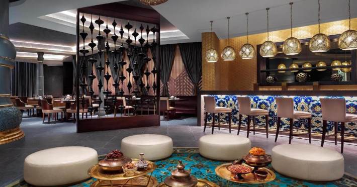 Fairmont Ajman oferă 7 restaurante și lounge-uri. Restaurantul turcesc servește specialități turcești intr-un cadru tradițional otoman. Spectrum oferă bucătării deschise și bucătărie internațională. Oaspeții se pot bucura de narghilea in lounge-ul in aer liber cu vedere la mare.