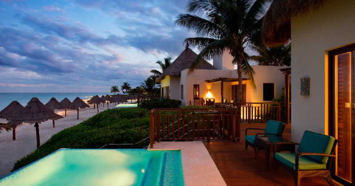 HOTEL This hotel comprises a total of 401 guest rooms, including 34 suites, either located in a traditional low-rise hotel building or clustered throughout the property in 90 2-storey casitas with 2 to 4 rooms each. It has restaurants, bars, a cafe, a business centre, meeting rooms, conference facilities and car rental services. It offers 24-hour room service, a baby-sitting service, supervised childrens programmes, a bellboy service, a luggage store, concierge and laundry services (charges apply), a car park, Internet access, wheelchair access and private transportation. Further facilities on offer to guests include a hotel safe, a currency exchange facility and a hairdressing salon. LOCATION The property is surrounded by jungle and crystal-clear canals, situated in an eco-hotel community some 40 minutes south of Cancun, on the Yucatan Peninsula. It is 15 minutes away from Playa del Carmen. ROOM The guest rooms and suites enjoy jungle, lagoon, golf course, pool or beach views. Room amenities include 1 king-size bed or 2 queen-size beds (some units include a sofa bed and a living area) and a spacious marble bathroom with a soaker tub, a separate glass-walled shower stall, a hairdryer and a double dressing table. Large sliding doors open to furnished balconies or terraces. Each room offers individually adjustable air conditioning, ceiling fans, TV, Internet access, a DVD player, a radio, a stereo system with CD player, an iron and ironing board, an in-room safe and a telephone. SPORT The hotel features small motor boats for the lagoon, golf carts, an 18-hole, par-72 golf course (charges apply) and bicycles, as well as a health club with spa treatments (for an additional fee) and a gym with electronic cardiovascular equipment, weights, gym instructors, personal trainers, yoga masters and a view of the forest marsh. Guests can also relax in the spa and the 5 outdoor swimming pools (including 1 childrens swimming area). The hotel also offers activities and excursions such as diving in cenotes (natural underground caves, pools and wells), adventure walks in the jungle and horse riding on the beach in Loma Bonita. REMARK Guests are required to pay a resort fee on site, upon checking out.|The hotel is pet friendly.Datorita dinamicitatii domeniului disponibilitatea ofertelor se modifica de la un moment la altul. De aceea ofertele sunt valabile in limita locurilor disponibile. Agentia nu este responsabila pentru eventualele neconcordante care pot aparea intre informatiile privind tarifele si alte detalii din site si informatiile primite in agentie. In aceste cazuri vor avea prioritate, intotdeauna, informatiile primite in agentie.