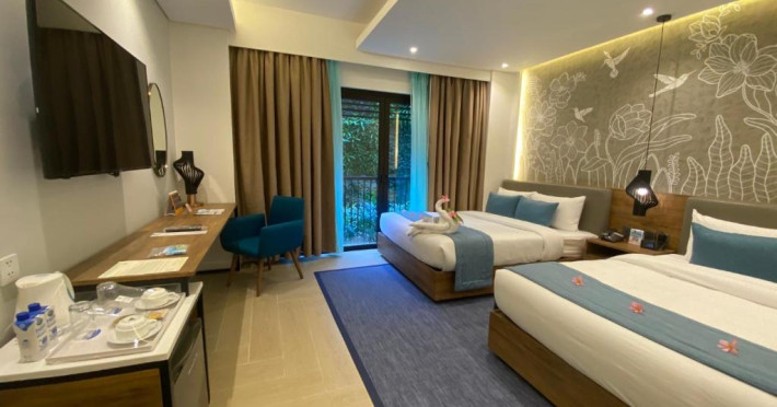 Camerele cu aer condiționat au vedere la grădină, piscină sau teren de golf. Fiecare cameră este dotată cu seif, TV LED cu ecran plat, frigider și aparat de ceai/cafea. Baia privată include duș, articole de toaletă gratuite și uscător de păr.
