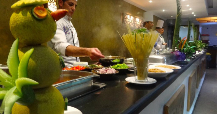 La Falcon Naama Blue oaspeții au la dispoziție un restaurant care servește mâncare în stil bufet și à la carte. Preparate din bucătăria internațională așteaptă să fie degustate în fiecare zi la micul dejun, prânz și cină. Masa poate fi servită atât în interior, cît si în aer liber, pe terasă, în funcție de vreme. Oaspeţii pot avea diverse băuturi răcoritoare sau alcoolice la bar. De asemenea , în cadrul proprietății, există cafenea și snack bar ideale pentru o gustare rapidă.